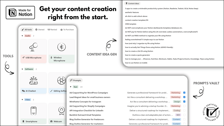 ✅ Set up and organize all your digital and physical tools so you can create content without friction.