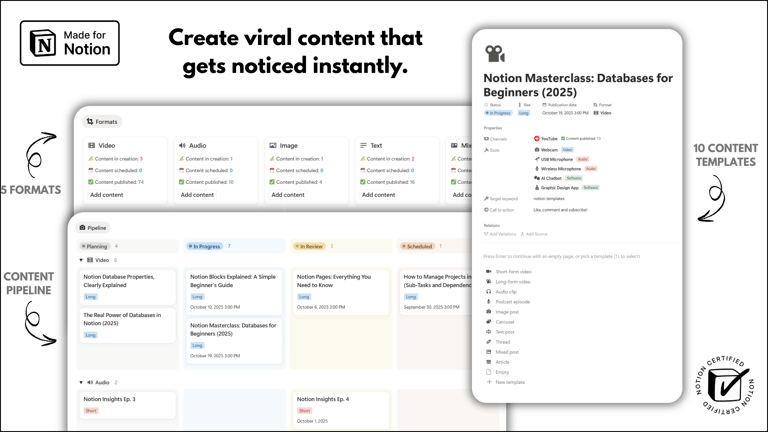 ✅ The ultimate pipeline to organize every stage of content production (from idea to publication) and scale effortlessly.