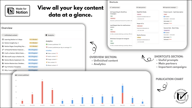 ✅ How to build a powerful content calendar and measure performance through intuitive analytics dashboards.